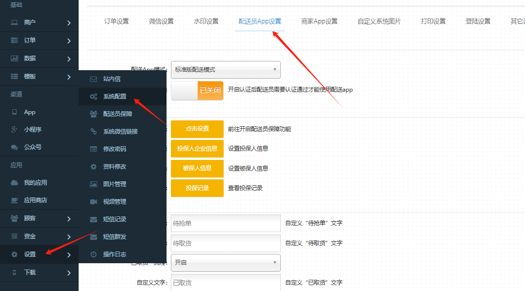 操作方式:设置-系统设置-配送员APP设置
