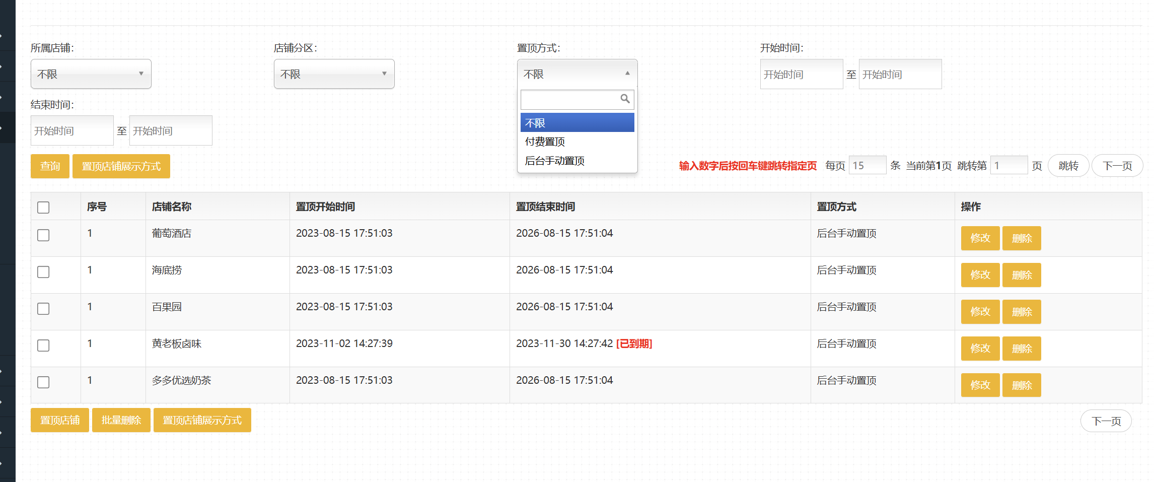操作方式:模板-商户列表模板-店铺置顶