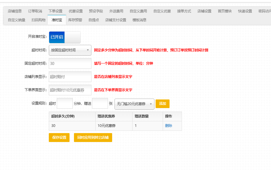 操作方式:商户-店铺管理-修改-准时宝
