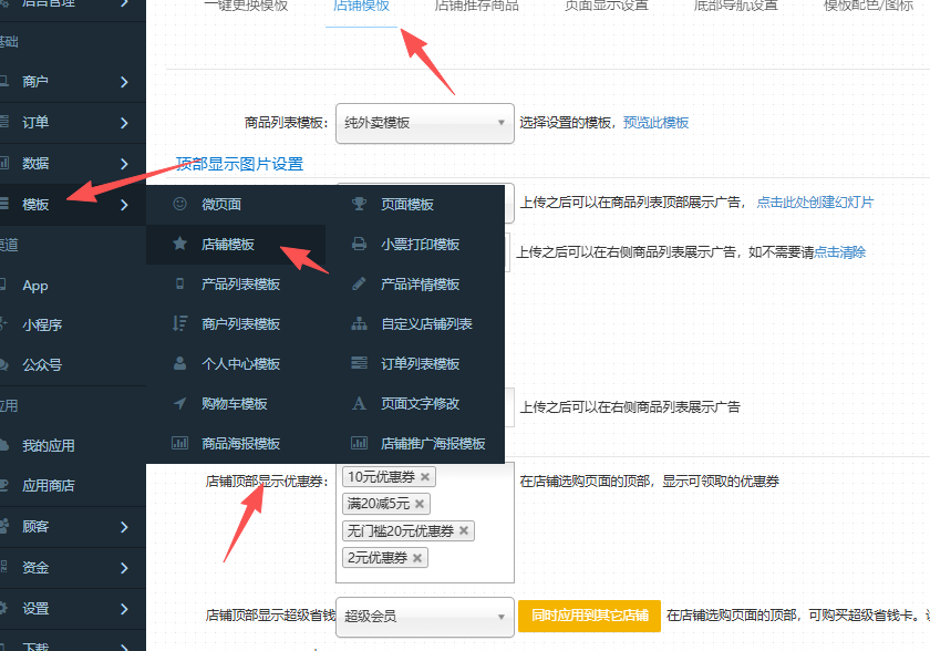 操作方式:模板-店铺模板-顶部显示优惠券