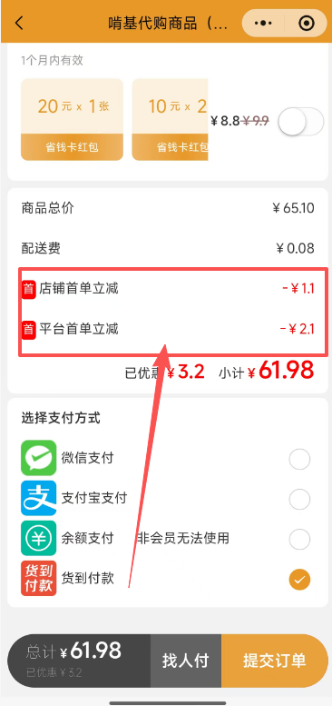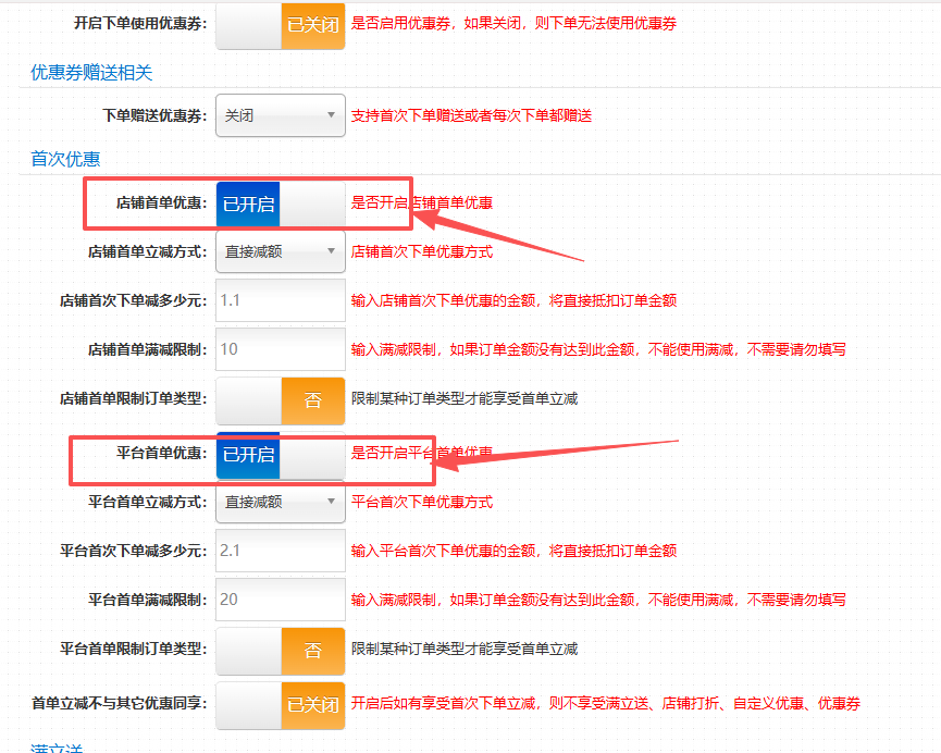 操作方式:商户-店铺管理-修改-优惠设置