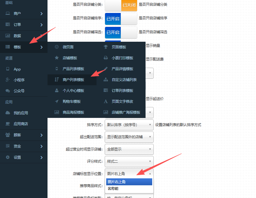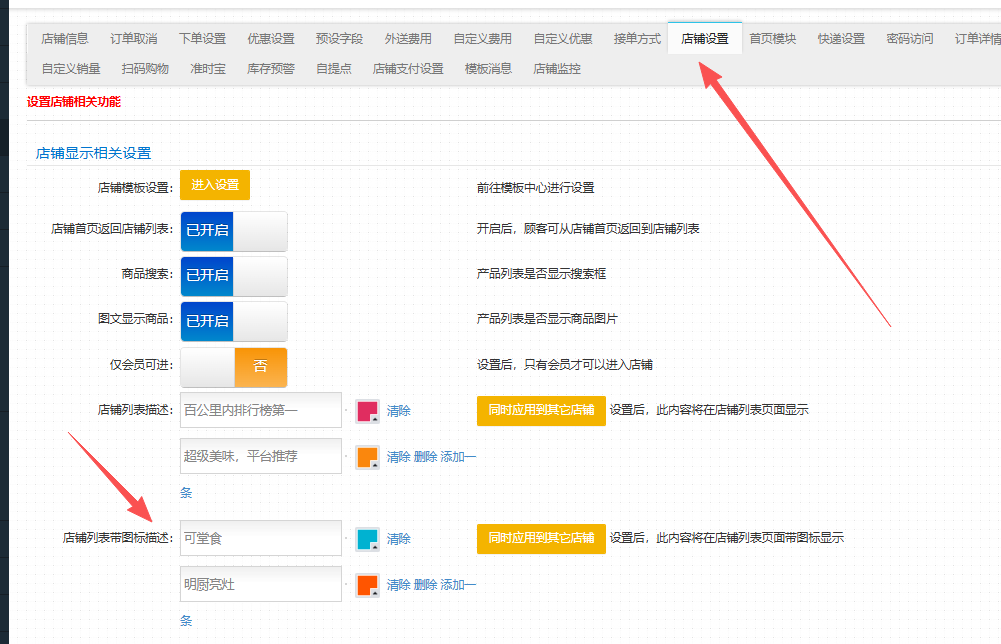 操作方式:商户-店铺管理-修改-店铺设置