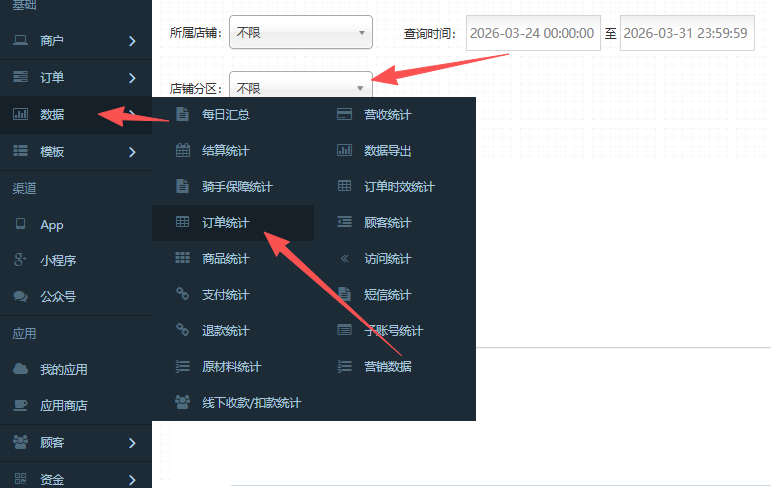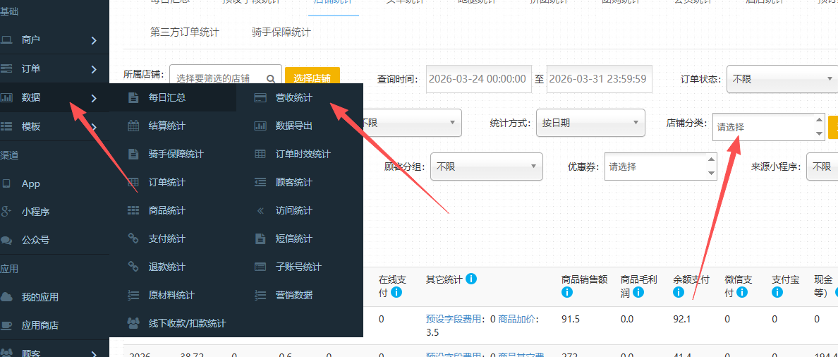 操作方式:数据-营收统计