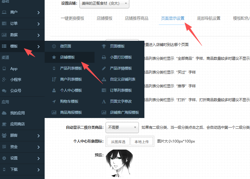 操作方式:模板-店铺模板-页面显示模板