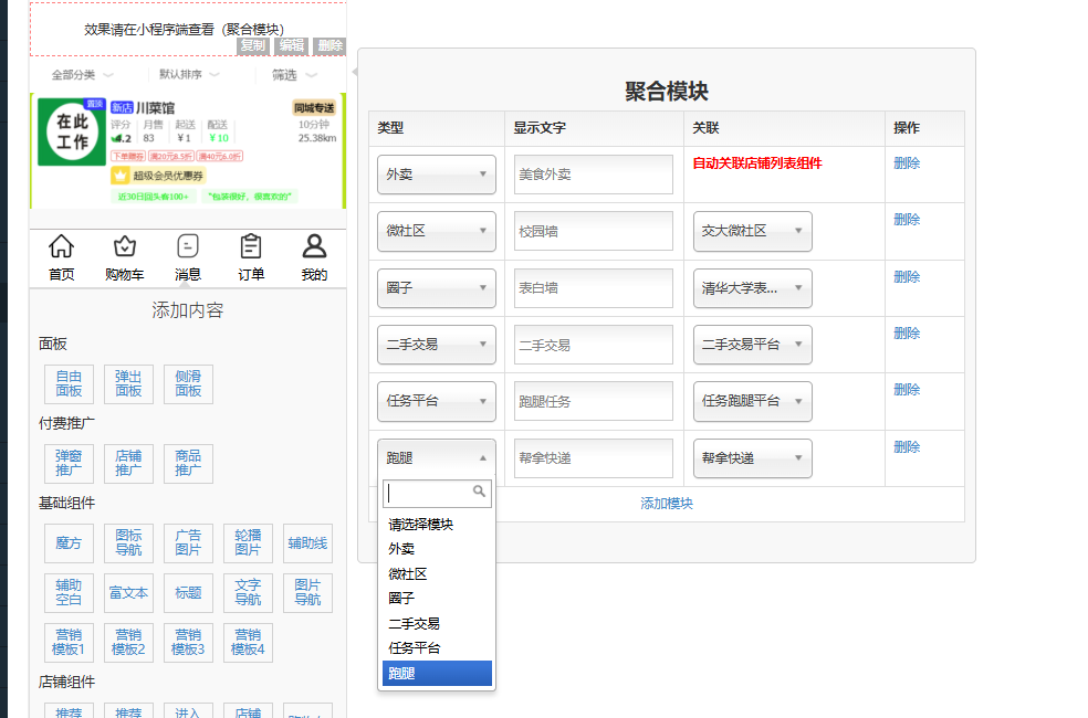 | 微订3月31日更新说明,含13+产品功能优化升级! admin 发表于 2026-03-31 14:12:02 一、小程序首页自定义模板重磅升级,新增一个“聚合模块”,支持将“外卖”“跑腿”“微社区论坛”“圈子表白墙”“二手交易”“任务跑腿平台”等模块同时聚合在小程序首页显示,以选项卡切换的方式可展示各个模块的内容,极大的增加了用户的浏览体验,不需要跳转页面模块来浏览内容 操作方式:小程序-020平台-页面管理